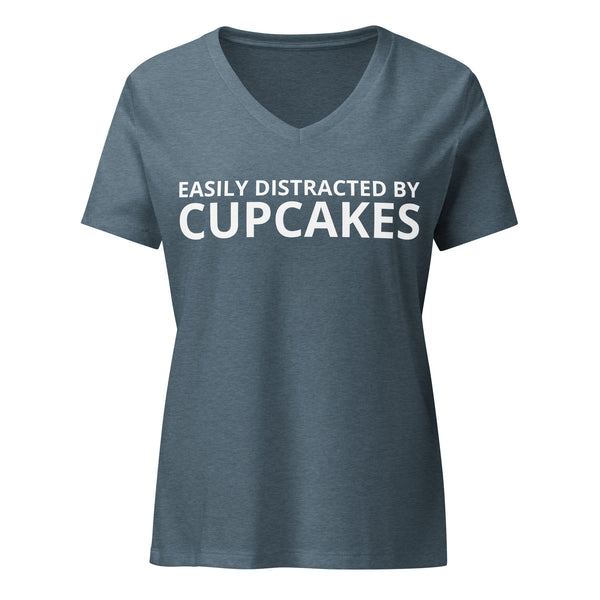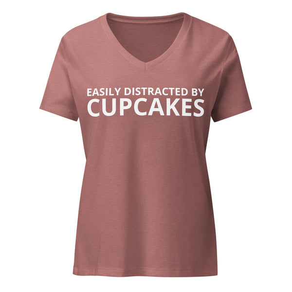 Women’s relaxed V-NECK t-shirt "EASILY DISTRACTED BY CUPCAKES"